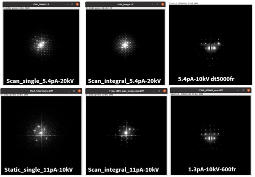 Felis T3 已成功用于多个前沿材料体系的结构研究,例如:石墨烯和六方氮化硼等单原子层材料,单层 MoS₂、WS₂等金属硫化物也能通过该探测器获得高质量的衍射信息。此外,包括硅烯、锗烯在内的硅系 “Xene”材料,MXene(过渡金属碳化物/氮化物)等新型二维材料,以及各种钙钛矿材料(如层状 Ruddlesden–Popper 结构钙钛矿)、二维共价有机框架(COF)、金属有机框架(MOF)和钙钛矿太阳 能电池材料等,均可通过Felis T3 4D-STEM技术获得结构表征。