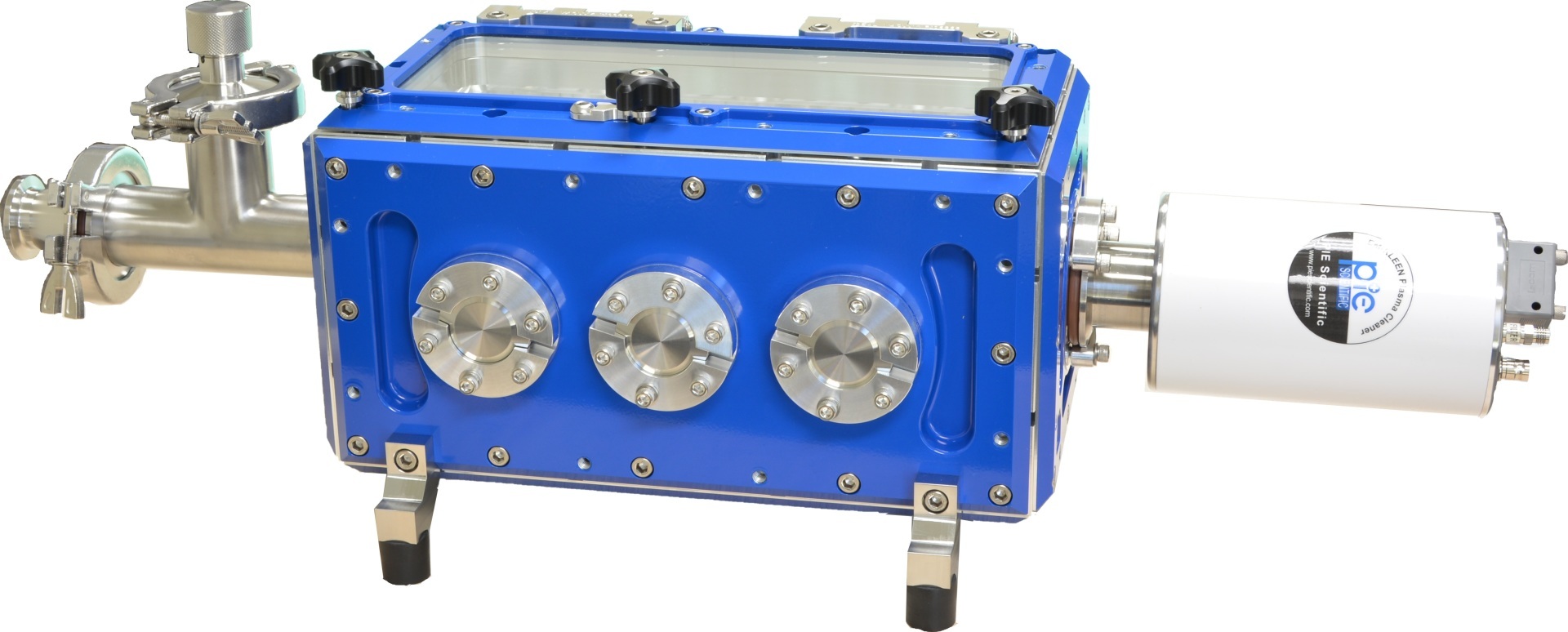 应用:EM-KLEEN远程等离子源采用室内空气、氧气或氢气作为处理气体产生氧或氢自由基。待清洁样品可从顶部玻璃门装载。 EM-KLEEN等离子源也可被取出,安装到SEM、FIB和XPS系统真空腔室上进行腔室清洁。