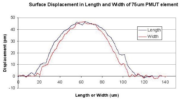 图5. 75微米pMUT基元轴方向位移的测量