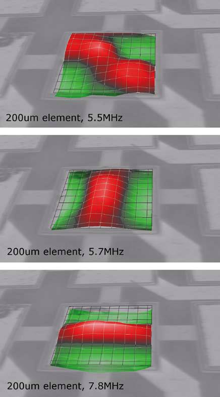 图6. 200微米pMUT基元高频处的振动