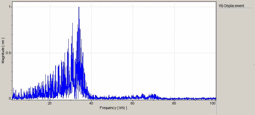 测试开始前,该文件做了磁性测试,测试中,文件被磁性信号华莱士方程分析跟踪。该分析得到了非周期振动 (NRRO) 或信号的谱相干。图3所示的结果表示磁头的强烈的共振信号。激光测振仪的测试与非周期振动数据相关。 怀疑新的空气流动组件导致不
