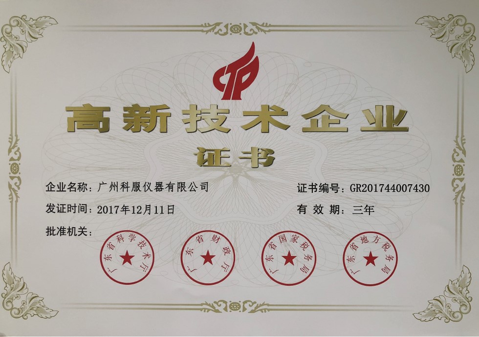2017年12月11日,全国高新技术企业认定管理工作领导小组办公室发布了《关于公示广东省2017年第二批拟认定高新技术企业名单的通知》,广州科服仪器有限公司名列其中,正式成为国家级高新技术企业。