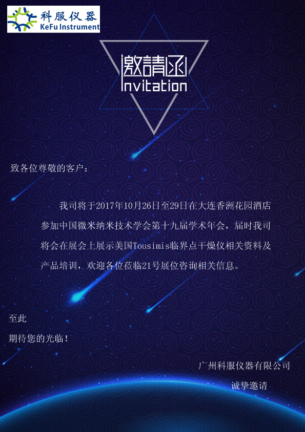 我司将于2017年10月26日至29日参加中国微米纳米技术学会第十九届学术年会