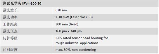 • 测量静态和反向运动时的面内振动速度,高达100 m/s • 远测试距离 • 激光光斑直径μm级,可测量小器件的振动,如细线 • 采用非接触式测量方法,以完全无失真的方式记录动态速度 • 频率带宽高达 250 kHz,适用于超声波测量 • 设计坚固,也适用于全面质量管理技术参数: